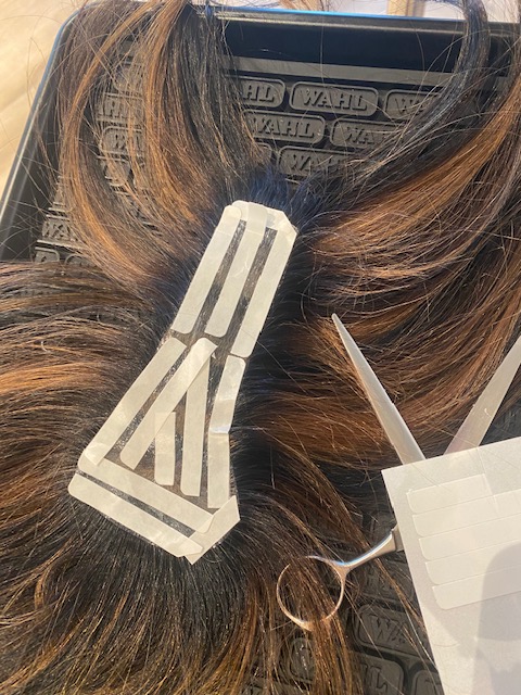 De t-parting wordt met een speciale plaktechniek boven op het hoofd bevestigd, waarbij dit 5/6 weken goed zal blijven zitten.